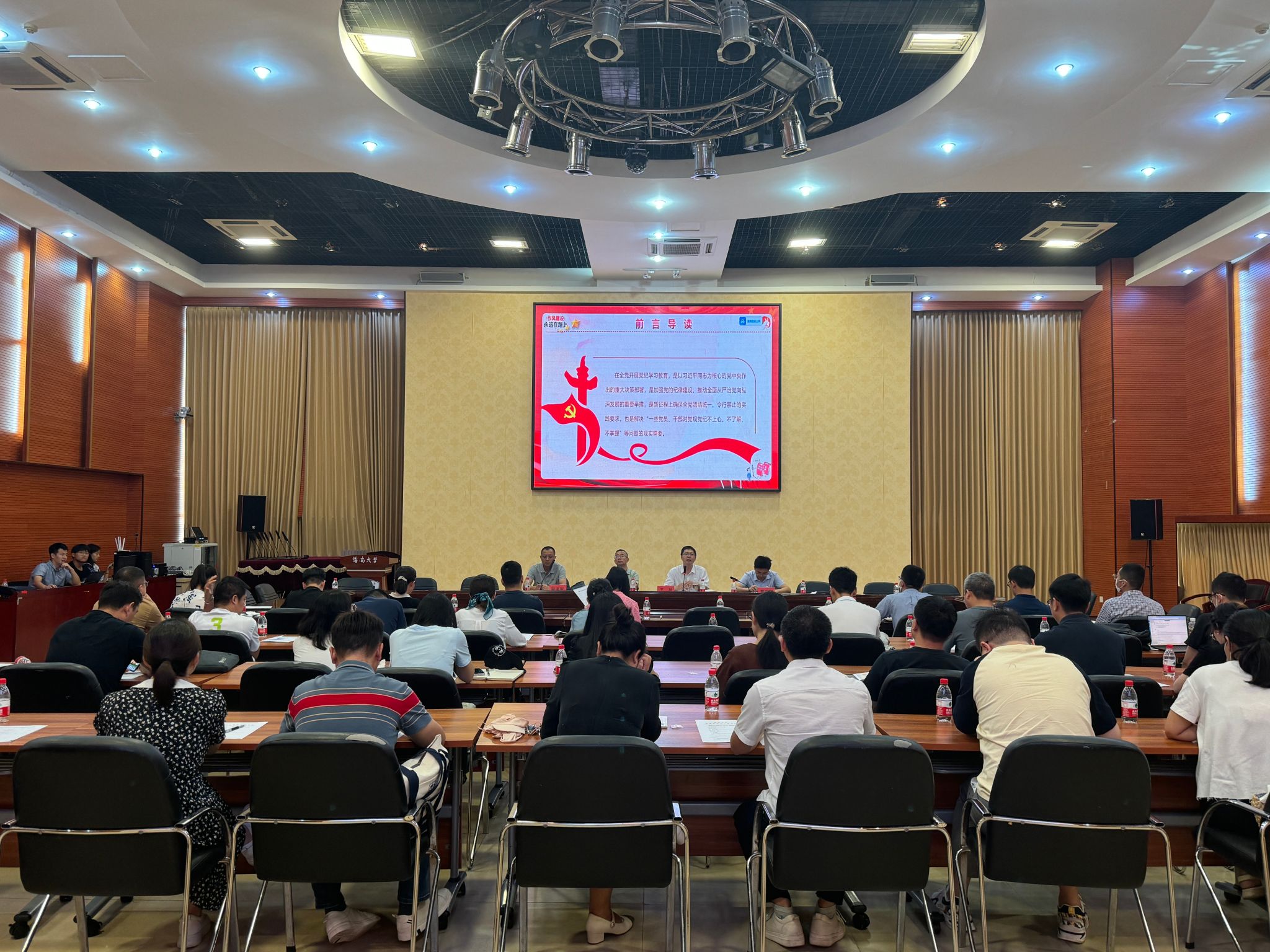2024年6月24日,为深入学习贯彻习近平总书记关于党纪学习教育的重要讲话和重要指示精神,扎实推动党纪学习教育走深走实,yh533388银河在海甸校区思源学堂多功能厅召开《中国共产党纪律处分条例》专题学习报告会。党总支书记王旭为公司全体党员教职员工作题为“推动党纪学习教育走深走实,全面促进yh533388银河高质量跨越式发展”专题报告,经理徐顺清,副经理葛成军、廖建军及公司党员教职员工参加会议。